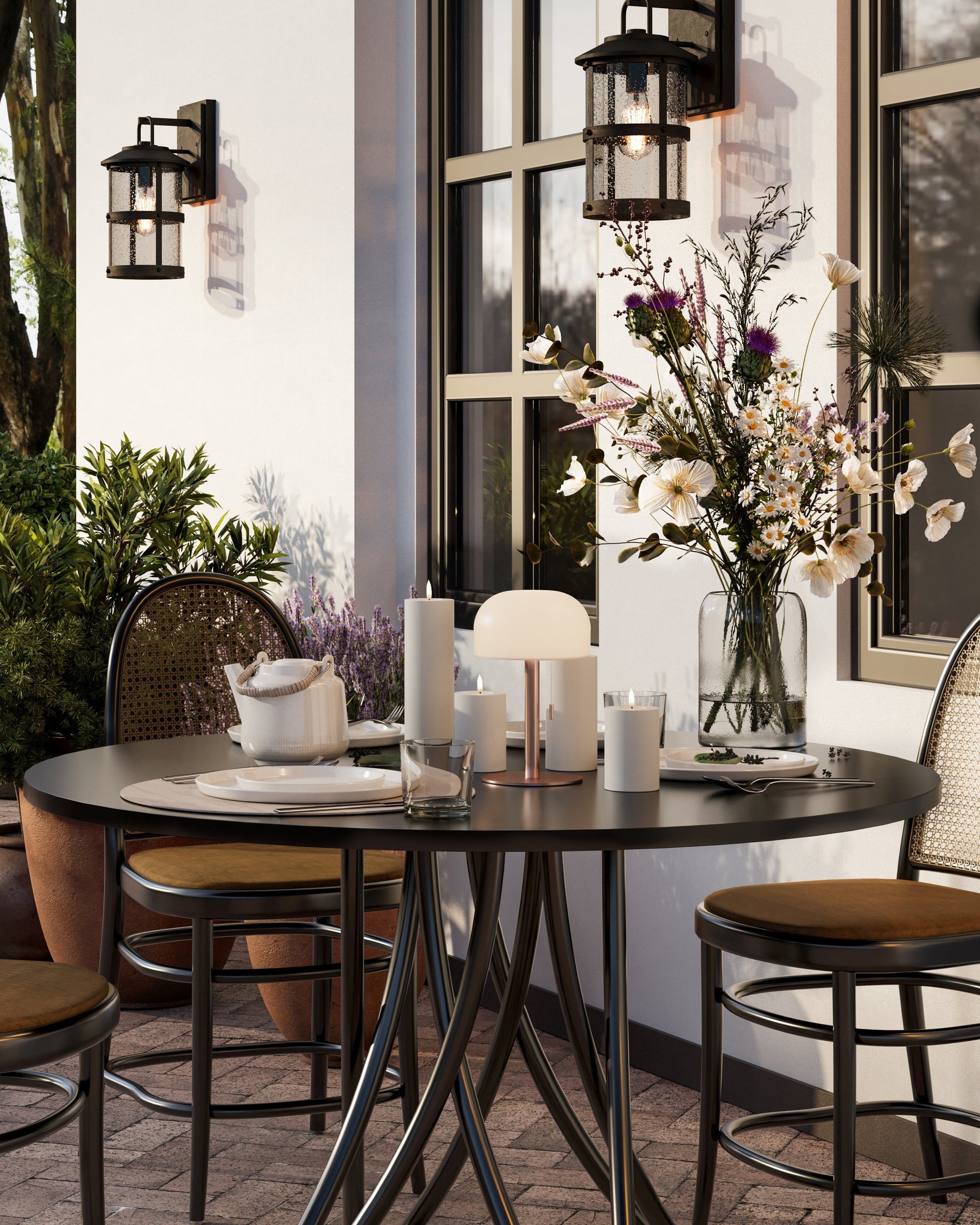 S jeho certifikací IP44 je lampa také vhodná pro venkovní použití, takže si můžete vychutnat evokující světlo na balkoně, v zahradě nebo pod otevřenou oblohou.