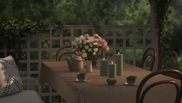 For et roligt helhedsindtryk kan du samle lysene på et fad og variere højderne, mens farverne holdes i samme palette.