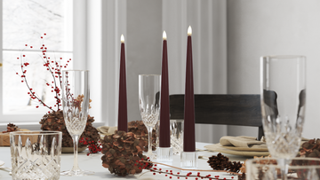 LED levende lys i fargen Burgunder.