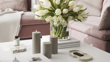 Bloklys er perfekte til dekorationer. Saml dem på et fad, i en lanterne eller i vindueskarmen for en rolig stemning.
